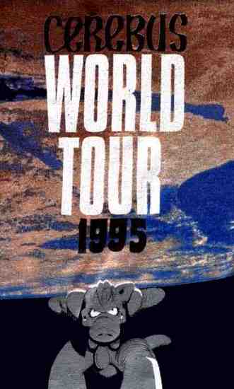 In '95, Cerebus doesn't do less than tour the world. This is the T-Shirt sold at the occasion.