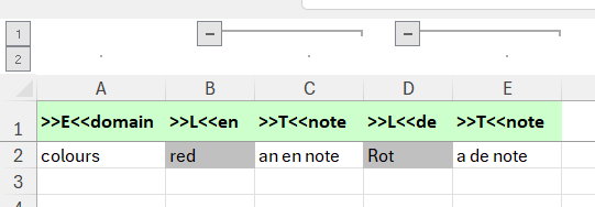 If you look at terminology in a spreadsheet, there can be a lot of scrolling left and right. especially if you have many languages. This option bundled fields in groups an hides these groups.