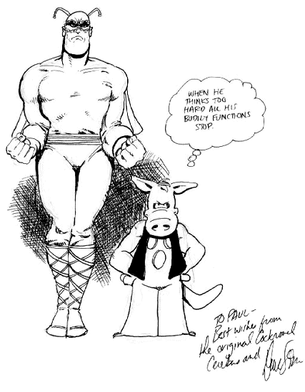 The cockroach giving his best to give a good impression. In the eyes of one Cerebus, he fails. Although he personally signed, an ability you would not take for granted in a guy like that.