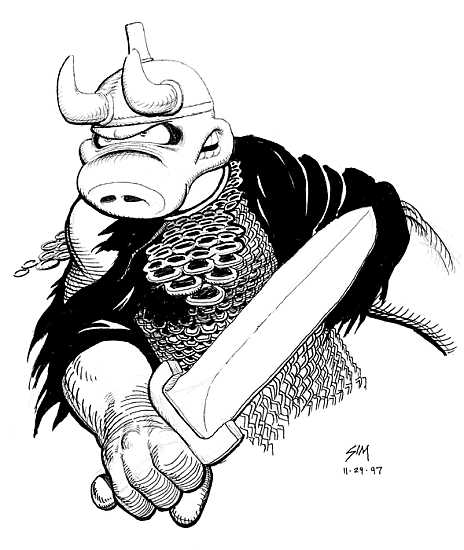 A 1997 drawing donated for a charity event. Cerebus back in his good old barbarian days.