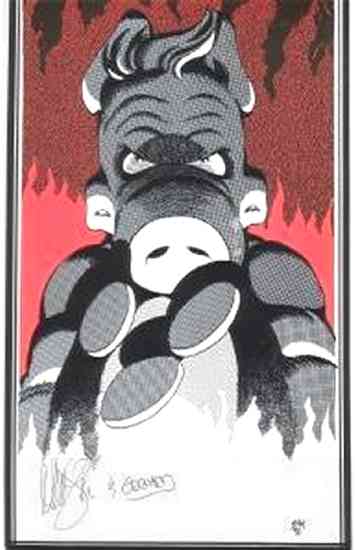 The stern look and flames hint on the pope period, but why is Cerebus in barbarian vest instead of robes?