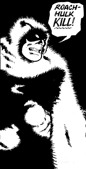 A very intoxicated Sergeant Preston shows signs of the crowd of personalities that hide within him. For a short while, Roachhulk tries to break through, although he still doesn't have the power to change his costume, like later incarnations.