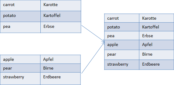 Let's start with a simple case without any problems. You have a fruit and a vegetable termbase, and want to combine them.