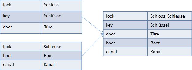 In the example below, a lock in a door is not the same as a lock in a canal, but the terms get merged anyway.