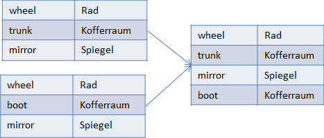a.k.a. different word, same meaning. If you have synonyms in the source language, (the language you chose as the merging field), things won't work out, and you get not enough merging. The converter doesn't know meanings, so it only merges identical words. Everything that looks different will go to a different entry. Take for example these near identical US and UK termbases. trunk and boot will not be merged, even though they mean the same:
