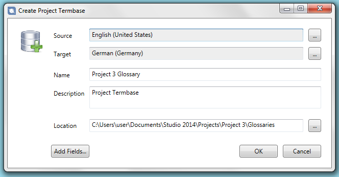 If you just want a basic termbase, you can click OK now. If you want to add fields, there is the obvious Add Fields button.