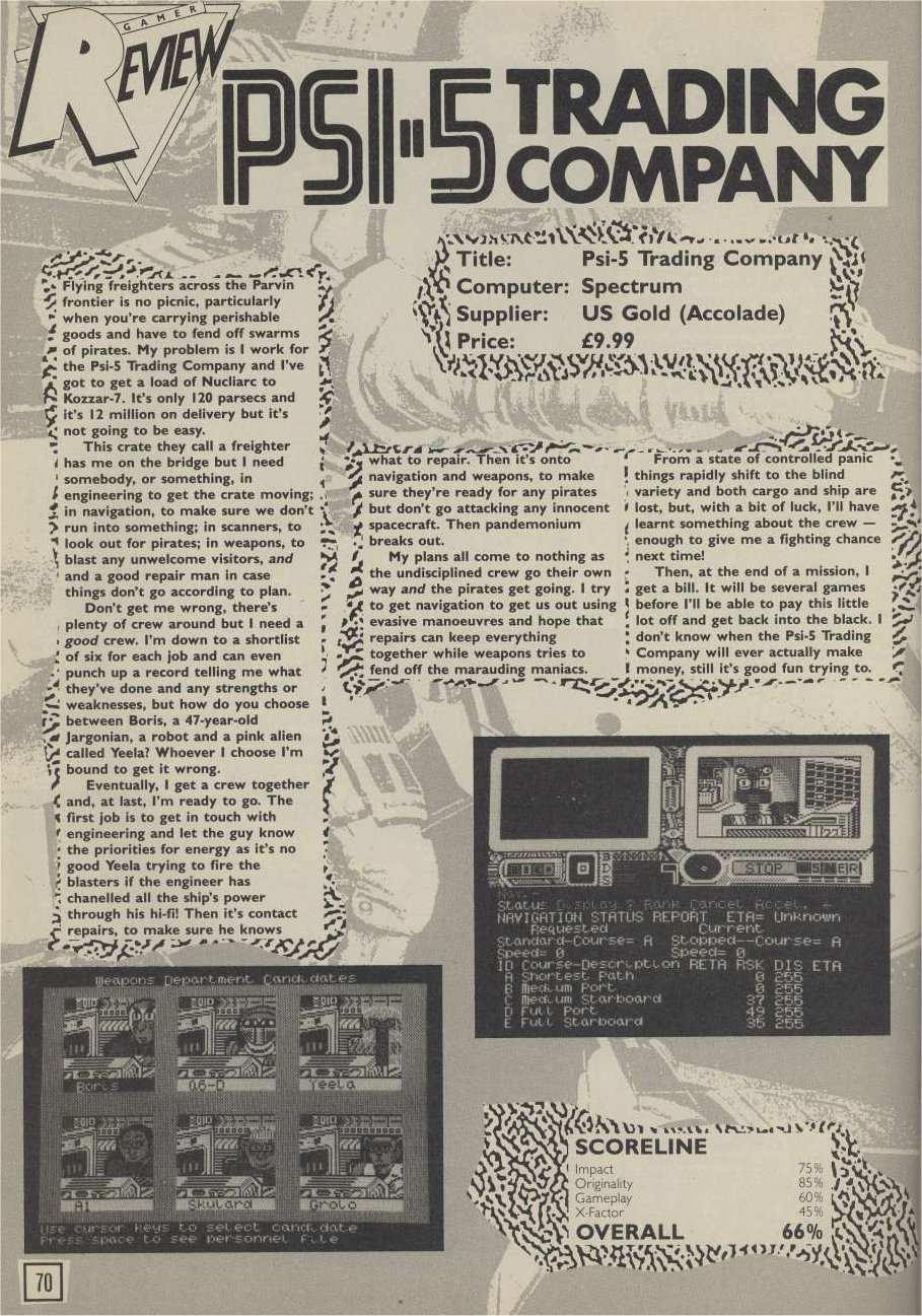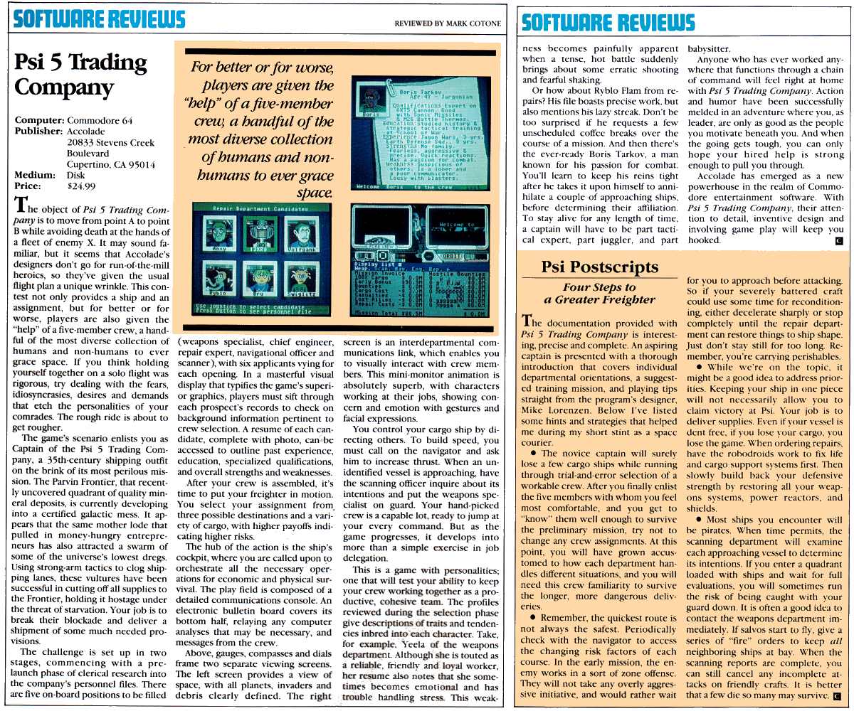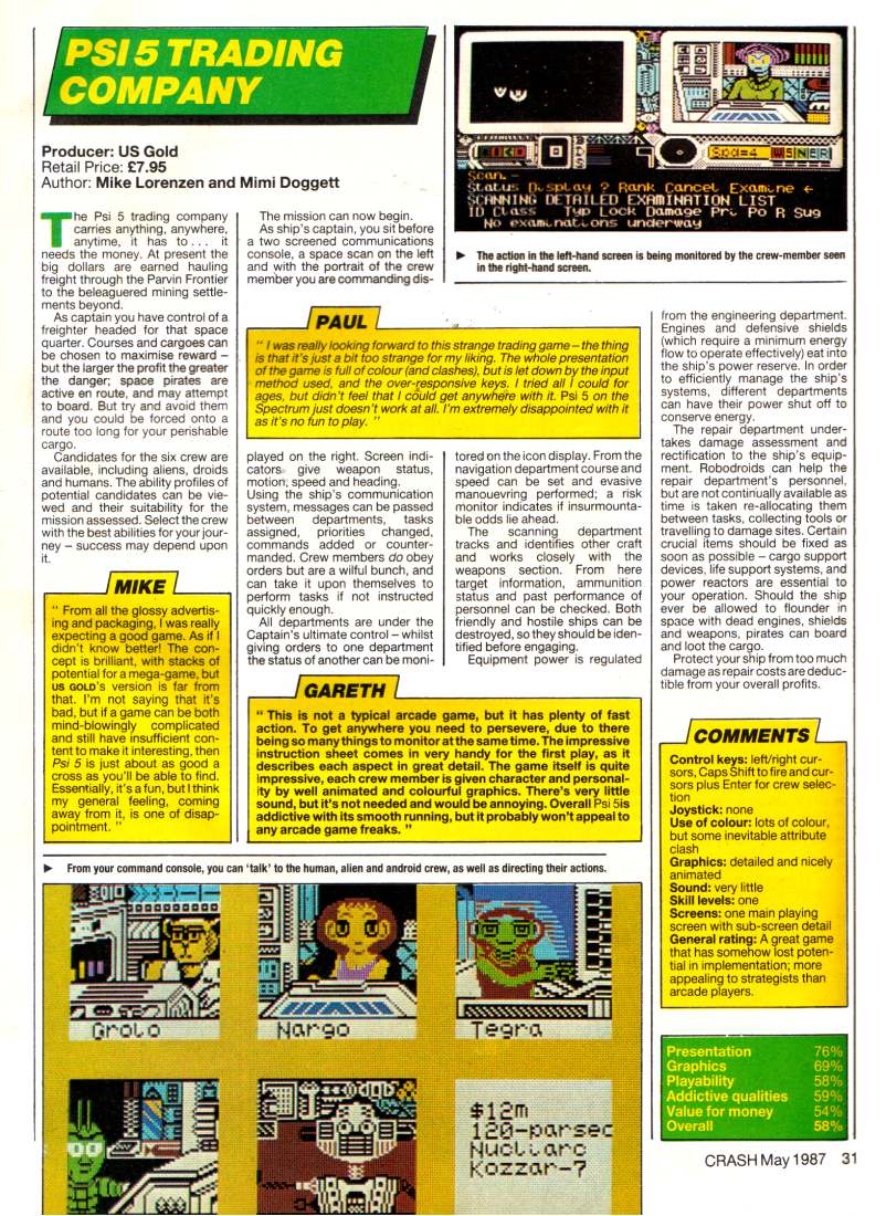- From Computer Gamer, a truly entertaining and immersive review from the UK. It appeared in issue #14,May 1986. It's a bit hard to read, so here is the online version, found here.
