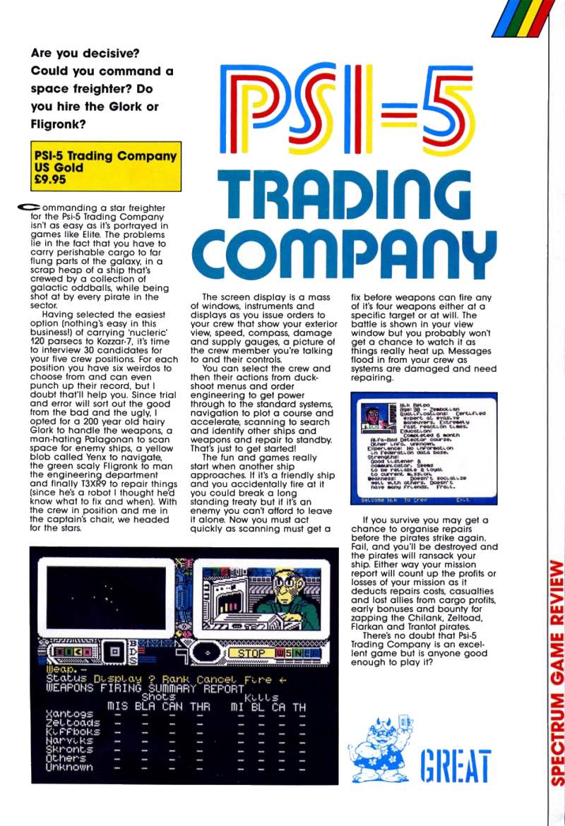 - And hey! Somebody liked the spectrum version: ZX Computing , June 1987,