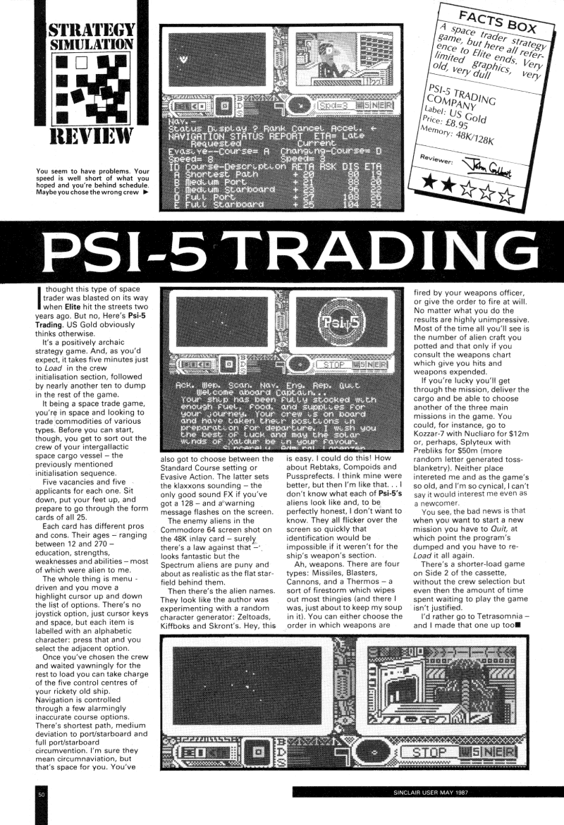 - Same for Sinclair User May 1987 : The bile they